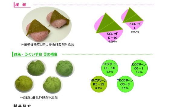 赤・緑色の製品を使用し、団子・餅を着色いたしました。 桜餅・うぐいす餡などの商品開発にご利用ください。 …